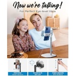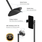 EYE-LEVEL VIEW 👁 Perfect phone angle for holding video calls, watching movies, reading. Position screen height 9 to 14″ (incl. 360° rotation & 50° tilt) to avoid text neck, back strain, bad camera angles. Extra-wide 2.53 – 3.54” clip-on holders.