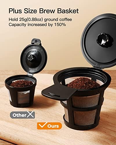 Your Perfect Coffee Maker for Ground and Pod Coffee – This coffee maker is compatible with K-Cups and includes a reusable ground basket so that you can brew your preferred brand of coffee powder or tea. Brew any size cup between 6 and 14 oz for a smooth cup of coffee to kick- start your day. Its large capacity powder basket can hold more coffee powder (max 0.88oz), allowing you to get the tastiest cup of coffee or tea.