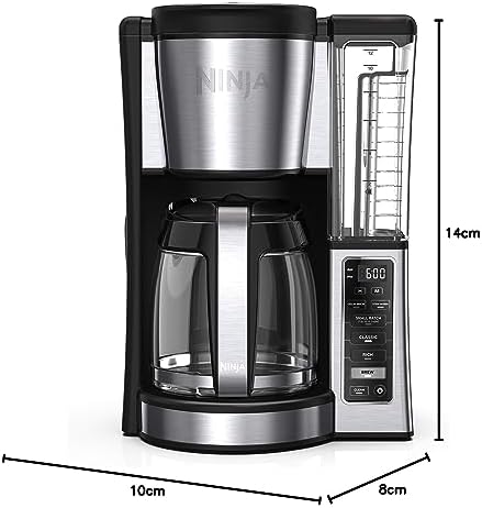 Ninja Coffee brewer is a 12 Cup programmable Coffee maker with custom brew strengths and a hotter brewing advanced boiler to make hot, flavorful, and never-bitter Coffee. From a small batch (1-4 Cups) to a full carafe, classic or rich strengths, you can expect the same great taste. Enjoy ultimate convenience with 24-hr delay brew, an adjustable warming plate, and a removable water reservoir.